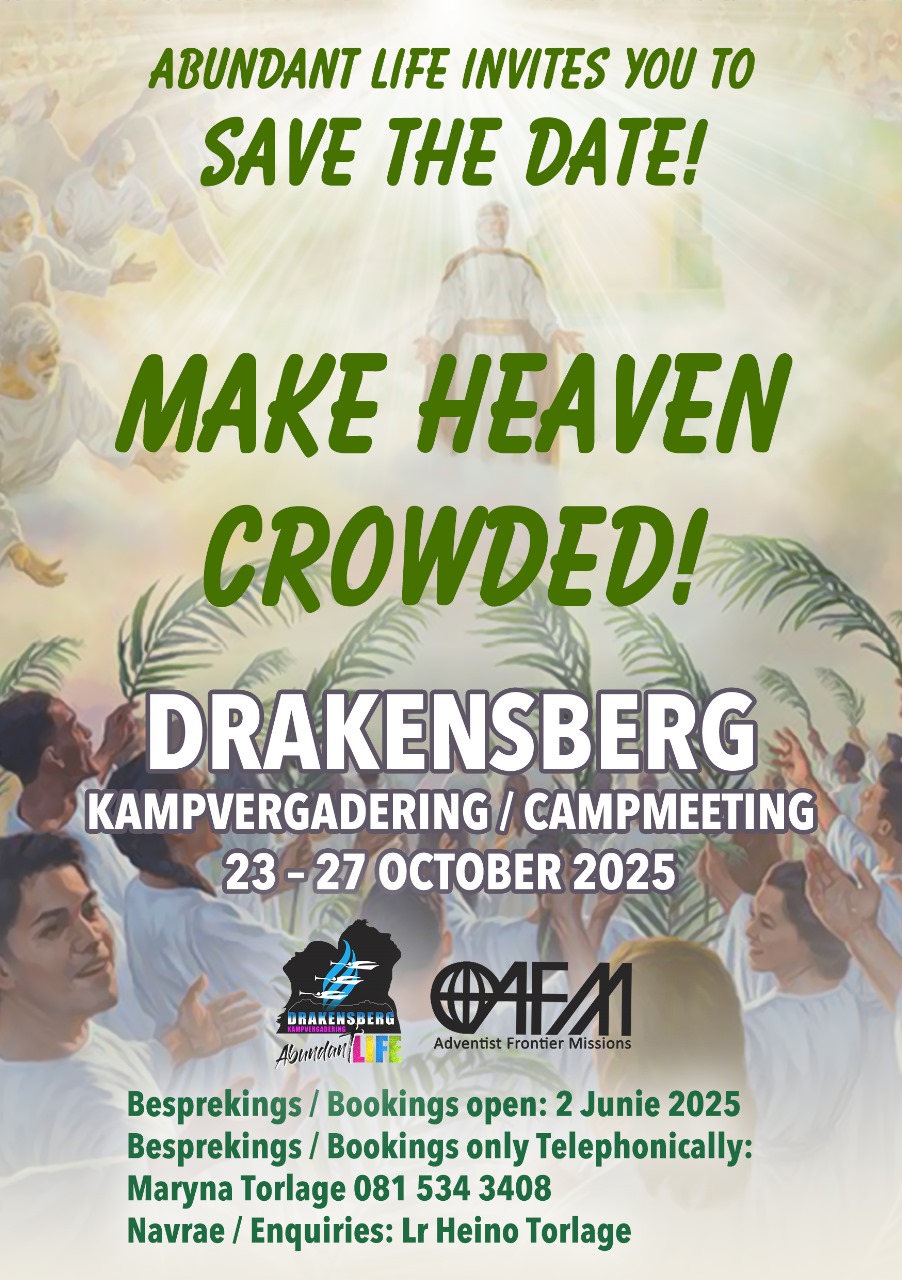 The Drakensberg Camp Meeting is a highlight of the year for many of us. With local and international speakers presenting sermons and seminars, there is plenty to choose from and never a dull moment. Spend time with friends and family in the beautiful Drakensberg environment and reach new spiritual heights with Jesus. Do not miss this year’s camp meeting!
