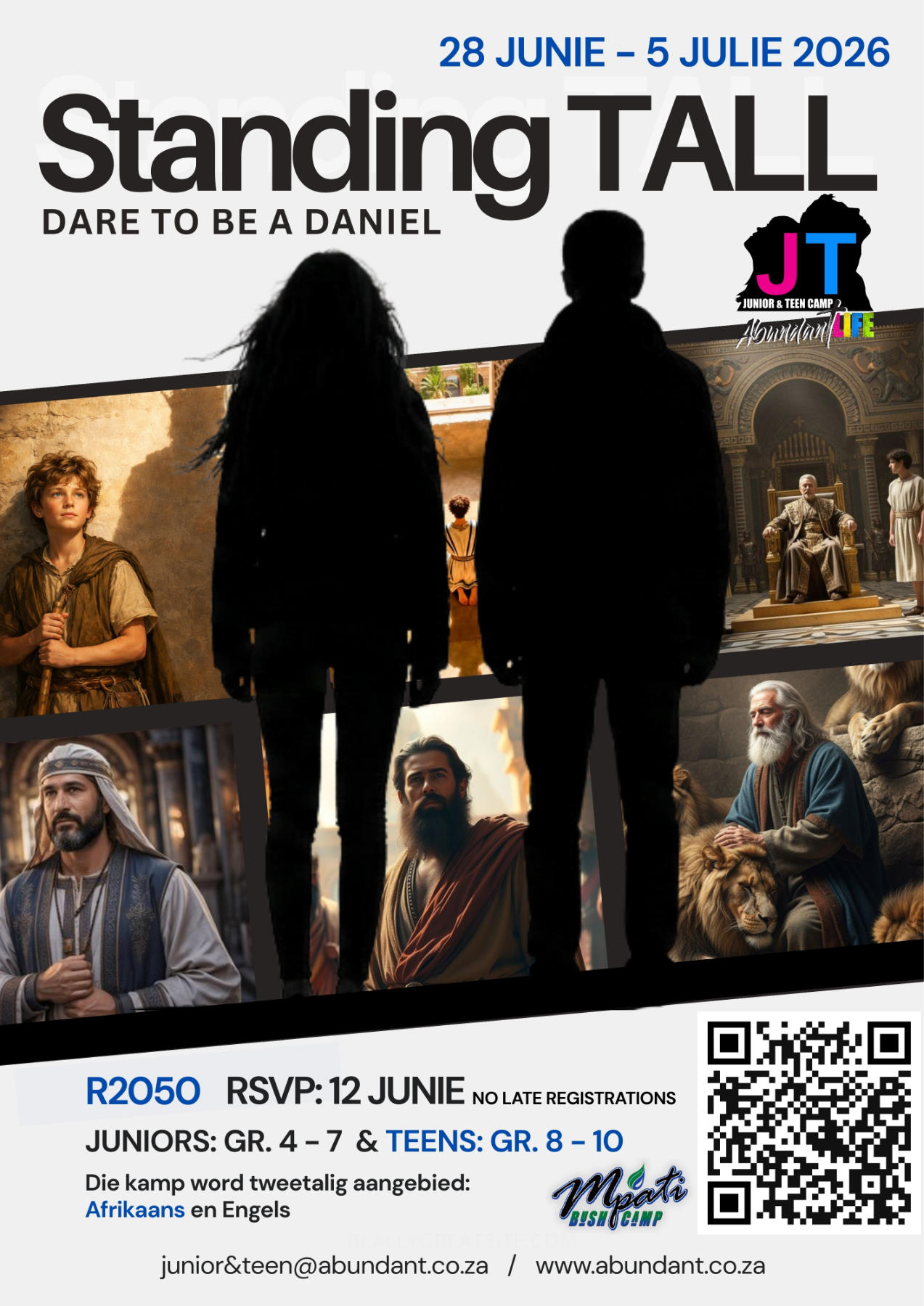 Elke jaar bied ons beide ‘n winter- en somerkamp aan vir ons Juniors en Tieners. Dit is groot pret met die klem daarop om ons jongmense geestelik te ontwikkel. Elke dag is propvol aktiwiteite soos sport, lesings, seminare, aanbidding en pret – hope pret.